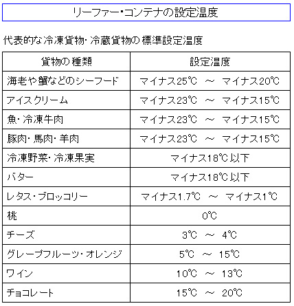 - 冷凍貨物・冷蔵貨物を専門的に運ぶコンテナ。通常の冷凍コンテナは+20℃から−25℃、または