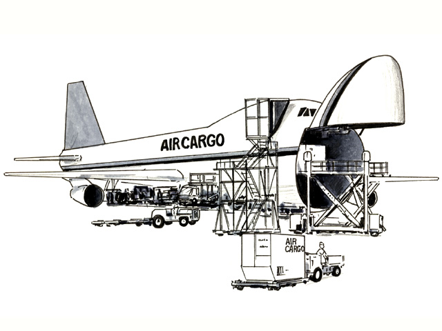 - 貨物を航空機に積む搭載機。通常、航空貨物はコンテナやパレットの形に梱包され、このローダーを利用