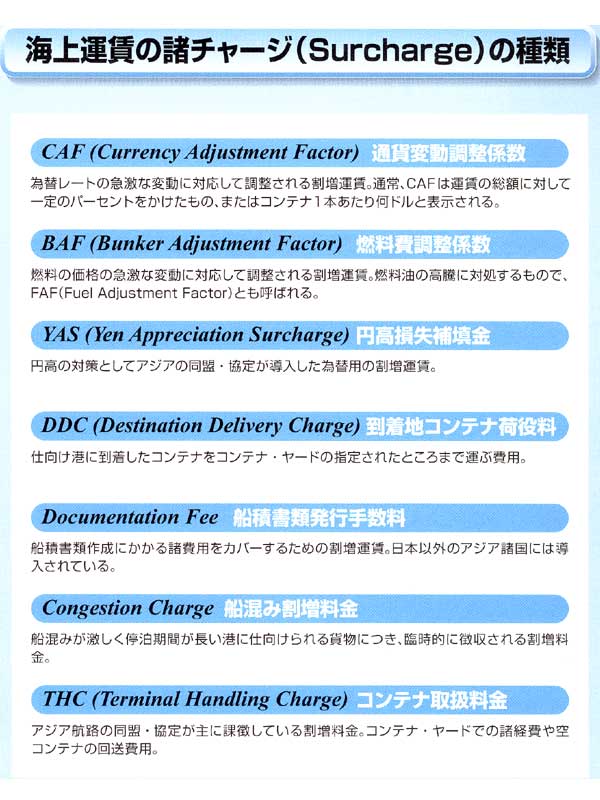 - BAF(Bunker Adjustment Factor:燃料費調整係数)