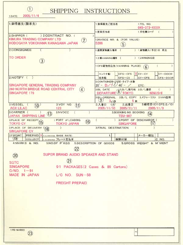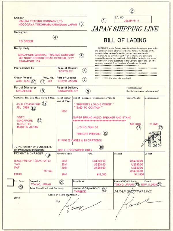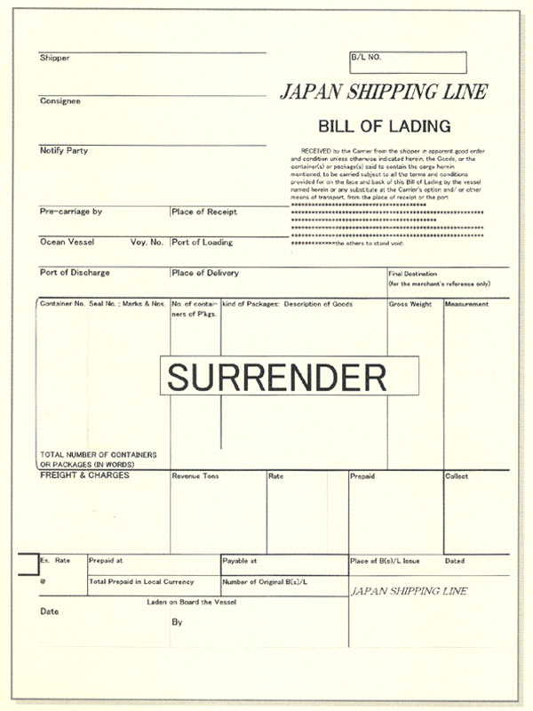 ひとつとして使用する書類です。通常、輸入者は船荷証券を船会社に提出し、輸入貨物を受取るのに
