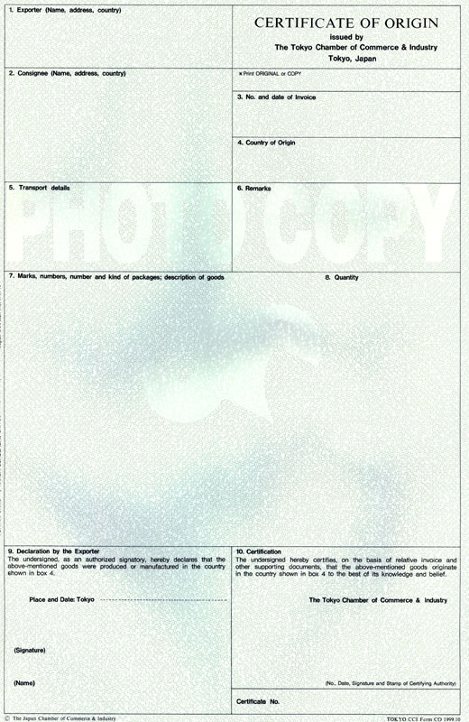 取引に関しては、輸出国政府の発行する輸出許可書または原産地証明書が必要です。