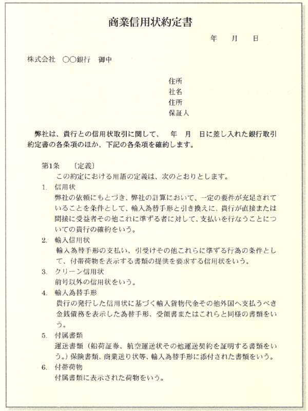 解除手続きを行うことが必要です。輸入者はBank L/Gを取得するには、銀行に対して下記の書類を提出