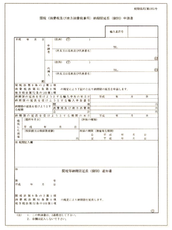 - 関税(消費税及び地方消費税兼用)納期限延長(個別)申請書