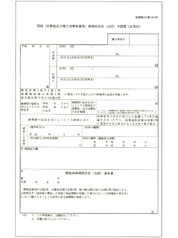 - 関税(消費税及び地方消費税兼用)納期限延長(包括)申請書(官署別)