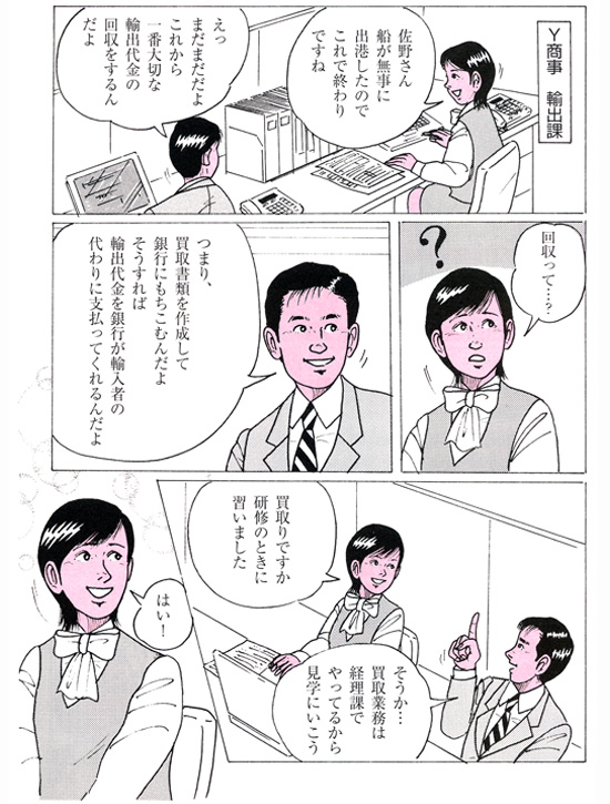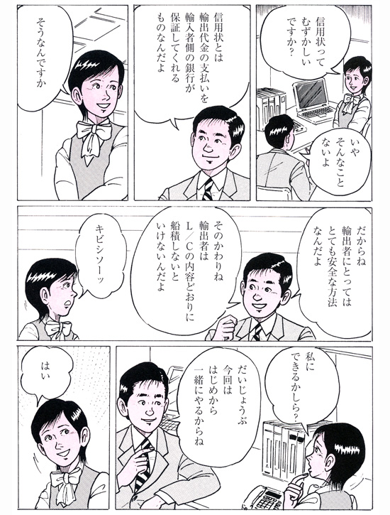 HOME > ビジュアルで学ぶ貿易実務 > マンガでマスター 輸出の流れ